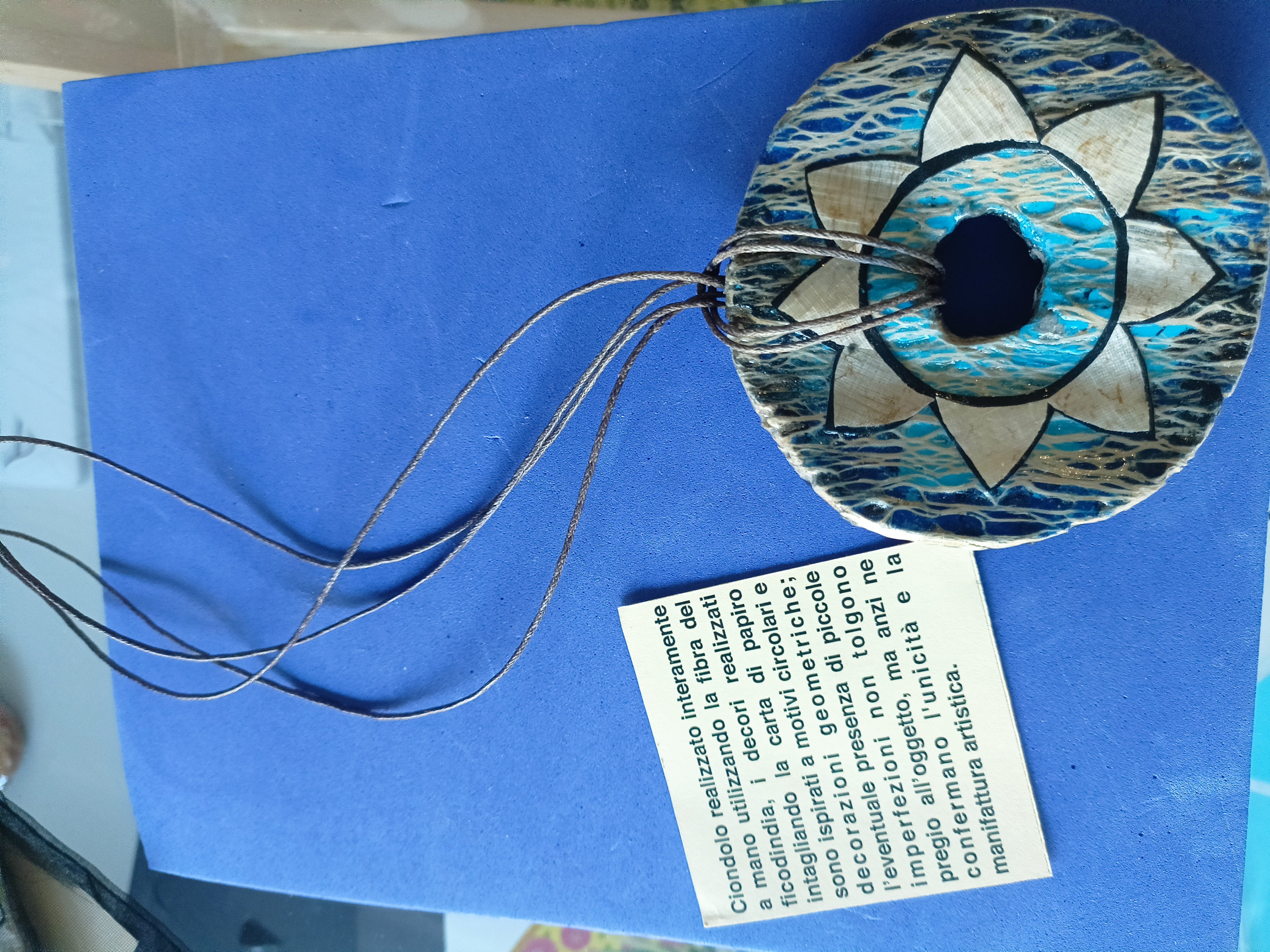 Ciondolo realizzato interamente a mano utilizzando la fibra del ficodindia.