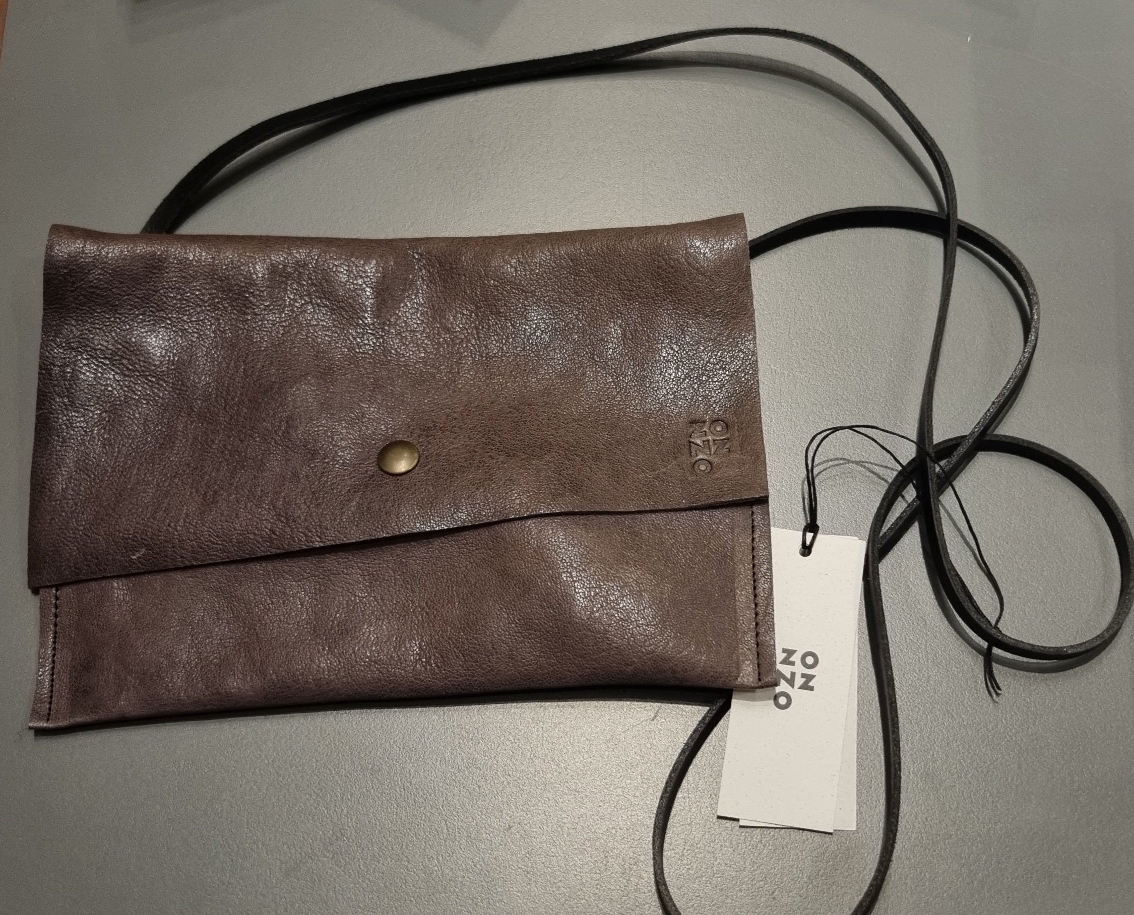 DESCRIZIONE: pochette realizzata a mano in pelle con tracolla